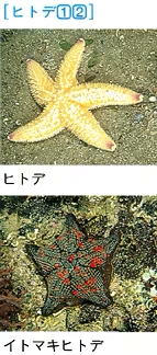 ヒトデ綱の棘皮(きよくひ)動物の総称。ふつう五本の腕をもち、扁平な星形の五角形をし、外面は多数の小骨板からなり、硬いが曲げることができる。腹面に口があり、肛門は背面に開く。腕の下面にある管足で移動し、貝類などを食べる。切れても再生力が強い。すべて海産。