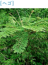 ヘゴ科の常緑の木生シダ。高さ約一〇メートル、直径約三〇センチに達する。幹の頂に、長さ約二メートルの羽状に裂けている葉が数枚、傘状に広がってつく。日本では九州・沖縄・小笠原などに分布。幹を装飾品、ランなど着生植物用の園芸材に用いる。