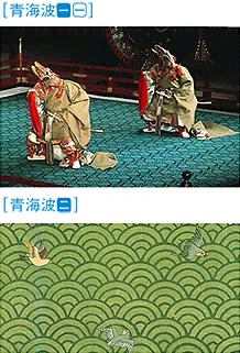 せいがいは【青海波】 (「清海波」「青海破」とも書く)雅楽。唐楽。盤渉(ばんしき)調で新楽の中曲。舞は二人舞で、舞姿は優美。「輪台(りんだい)」を序として引き続いて舞う。番舞(つがいまい)は敷手。清元。永井素岳作詞、二世清元梅吉作曲。明治三〇年(一八九七)五世清元延寿太夫の襲名披露曲として初演。初世の定紋の青海波にちなんだもの。波形をかたどった文様。半円形を同心円状に重ねたもの。の舞人の衣装に用いられたところから名づけられたという。
