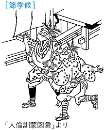 複数辞典一括検索+- (非使用)広辞苑大辞林新辞林大辞泉古語NHK 日本語発音アクセント辞典日国明鏡国語辞典新明解漢字源必携類類義使分大シ英辞郎研究社新英和大辞典ジーニアス英和大辞典ことわざ- (非使用)広辞苑大辞林新辞林大辞泉古語NHK 日本語発音アクセント辞典日国明鏡国語辞典新明解漢字源必携類類義使分大シ英辞郎研究社新英和大辞典ジーニアス英和大辞典ことわざ- (非使用)広辞苑大辞林新辞林大辞泉古語NHK 日本語発音アクセント辞典日国明鏡国語辞典新明解漢字源必携類類義使分大シ英辞郎研究社新英和大辞典ジーニアス英和大辞典ことわざせき‐ぞろ【△節季△候】🔗⭐🔉せき‐ぞろ【△節季△候】 《「節季(せつき)にて候」の意》江戸時代の門付けの一。歳末に三、四人一組でウラジロの葉をつけた笠をかぶり、赤い布で顔を覆い、四つ竹などを鳴らしながら「せきぞろ、せきぞろ」とはやして家々を回り、米銭を請うた。せっきぞろ。《季 冬》「―の来れば風雅も師走哉/芭蕉」 大辞泉 ページ 8449 での【節季候】単語。