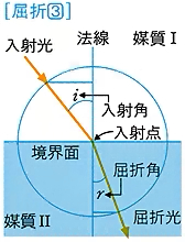 光や音などの波動が、ある媒質から他の媒質に進むとき、その境界面で進行方向を変えること。