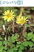キク科の多年草。田のあぜや道端に生える。茎は地をはい、節から発根する。葉は円形で長い柄をもつ。春から夏にかけて、約一〇センチの花茎の先に黄色の頭状花をつける。いわにがな。