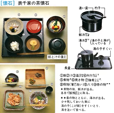 《温石(おんじやく)を懐(ふところ)に抱いて腹を温めるのと同じ程度に、腹中を温め一時の空腹をしのぐものの意》茶の湯の席で、茶をすすめる前に出す簡単な手料理。一汁三菜が一般的。茶懐石。