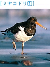 チドリ目ミヤコドリ科の鳥。全長約四五センチ。頭と背が黒色、腹が白く、足とくちばしが赤い。日本では迷鳥とされるが飛来記録は少なくなく、春秋や冬に海岸でみられ、二枚貝をこじあけて食べる。みやこしぎ。