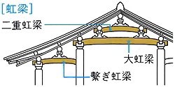 社寺建築における梁(はり)の一種で、虹のようにやや弓なりに曲がっているもの。