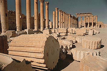 シリア中部の古代都市。シリア砂漠北端に位置し、地中海とペルシア湾を結ぶ隊商路の中継地として繁栄。ローマ時代を中心とする列柱・道路・大神殿・凱旋門などの遺跡は、世界遺産。