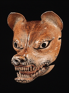 きょうげん‐めん狂言面キヤウ‥ 狂言の仮面。老人・醜女の役および神・霊・鬼・閻魔・動物などの役に用いる。約20種あり、主なものは祖父おおじ・乙おと・嘯うそふき・賢徳けんとく・武悪ぶあく・猿など。→能面。 姥 撮影:神田佳明(所蔵:山本東次郎家) 嘯吹(山本家の表記) 撮影:神田佳明(所蔵:山本東次郎家) 祖父 撮影:神田佳明(所蔵:山本東次郎家) 乙御前 撮影:神田佳明(所蔵:山本東次郎家) 鬼 撮影:神田佳明(所蔵:山本東次郎家) 神鳴 撮影:神田佳明(所蔵:山本東次郎家) 狐 撮影:神田佳明(所蔵:山本東次郎家) 賢徳 撮影:神田佳明(所蔵:山本東次郎家) 黒式尉 撮影:神田佳明(所蔵:山本東次郎家) 子猿 撮影:神田佳明(所蔵:山本東次郎家) 白蔵主 撮影:神田佳明(所蔵:山本東次郎家) 登髭 撮影:神田佳明(所蔵:山本東次郎家) 小豆武悪 撮影:神田佳明(所蔵:山本東次郎家) 狸 撮影:神田佳明(所蔵:山本東次郎家) 鳶 撮影:神田佳明(所蔵:山本東次郎家) 福の神 撮影:神田佳明(所蔵:山本東次郎家) 通円 撮影:神田佳明(所蔵:山本東次郎家) ふくれ 撮影:神田佳明(所蔵:山本東次郎家) 塗師 撮影:神田佳明(所蔵:山本東次郎家) 大黒 撮影:神田佳明(所蔵:山本東次郎家) ⇒きょう‐げん【狂言】