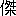 すぐれる。(ひときわ高く)ぬきんでている(人)。「傑出・傑物・豪傑・女傑」