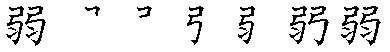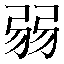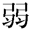 ]。「弓」+「彡」(=美しく飾る)の省略形を二つ並べた会意文字。美しく飾った、しなやかな曲線をもつ弓を表し、柔らかい、よわいの意。