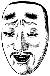 ③能面。眉根を寄せた色白の男面。貴公子の霊に用いる。