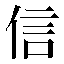 ②(相手の言葉を)まこととして疑わない。心から従う。「信をおくに足る部下」「神を信ずる」「信用・信頼・信仰・自信・不信」