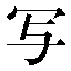 」(=移す)。外から家の中に物を移す意。転じて、物をうつしとる意。「写」は、異体字[冩]の略体。