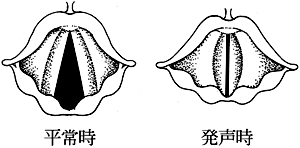 喉頭の中央部にある発声装置。前端は甲状軟骨の内面に、後端は披裂軟骨に付着する弾力ある2条の靱帯じんたいで、空気の通路(声門)の幅を縮め、肺から出される空気によって振動し音を出す。