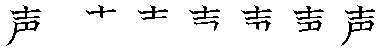 会意。「聲」の上半部は、石板をつるした楽器磬けいをばちでたたく姿の象形。「耳」を加えて、耳をうつ磬の響きの意。