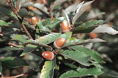 ブナ科の落葉高木。高さ約15メートル。ミズナラに酷似するが短いながら明瞭な葉柄を持つ点で区別できる。雌雄同株で春に開花。雄花は細長くつき帯黄褐色、雌花には楕円形の堅果を生じ、皿形の殻斗かくとを持つ。材は器具・薪炭などに、樹皮は染料に供する。ナラ。古名、ははそ。万葉集14「三鴨みかもの山の―のす真麗まぐわし児ろは」