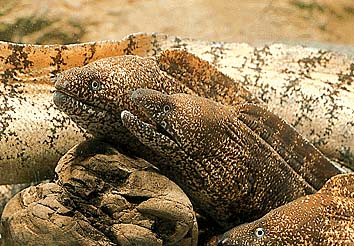 ウツボ科の海産の硬骨魚。全長約80センチメートル。太いウナギ型で美しい斑紋がある。口は大きく、歯は強大。沿岸の岩の間にすみ、性質は凶暴ではげしく噛みつく。食用および水産皮革の原料。