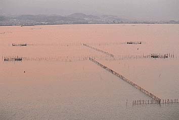 ③水流をせきとめて魚をとる仕掛け。やな。「魚梁」