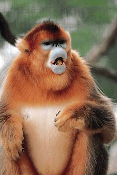 オナガザル科の哺乳類。ニホンザルよりやや小形で、金色の細く美しい毛を持つ。中国南西部と北西部の極めて限られた地域に分布。貴重な動物とされる。シシバナザル。ゴールデンモンキー。チベットコバナテングザル。イボハナザル。