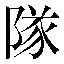 多人数が一まとまりとなった集合体。特に、兵士の組。「隊を組む」「軍隊・楽隊・隊伍たいご・隊員・隊長・隊商・騎兵隊」