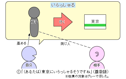 例:「(あなたは)東京にいらっしゃるそうですね」…図
