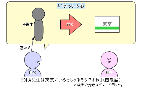 例:「A先生は東京にいらっしゃるそうですね」…図