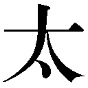 {形}ふとい(フトシ)。たっぷりとふくれているさま。ゆたかであるさま。ゆったり落ち着いたさま。〈同義語〉→泰。〈類義語〉→大。「太平(=泰平)」「太鼓タイコ(=大鼓)」
