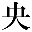 会意。大の字にたった人間の真ん中である、首の部分をかせで押さえこんださま。また人間の頭の真ん中を、押し下げた姿と考えてもよい。真ん中、真ん中を押さえつけるなどの意を含む。