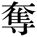 {動}うばう(ウバフ)。力ずくで他人のものを抜きとる。「強奪」「奪項王天下者必沛公也=項王ノ天下ヲ奪フ者ハ、必ズ沛公ナラン」〔→史記〕
