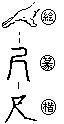 象形。人が手幅で長さをはかる。その手の姿を描いたもの。手ひと幅の長さは二二センチメートル余り。指一本の幅を一寸といい、指十本の幅が一尺に当たる。