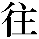 {動}いく。ゆく。どんどんと前進する。さきに向かっていく。〈対語〉→来・→返・→復。〈類義語〉→征・→行。「往来」「雖千万人吾往矣=千万人トイヘドモ吾往カン」〔→孟子〕