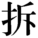 {動}ひらく。さく。打ち割って二つにさく。〈同義語〉→拓タク。「開拆カイタク」「声拆江河、勢崩雷電=声ハ江河ヲ拆キ、勢ヒハ雷電ヲ崩ス」〔→李華〕