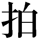 {動}うつ。手のひらをぱんとたたく。〈同義語〉→搏ハク。「拍手」「挙手拍馬鞍=手ヲ挙ゲテ馬鞍ヲ拍ツ」〔古楽府〕