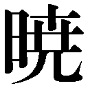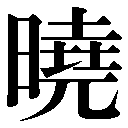 【暁】 12画 日部 [常用漢字] 区点=2239 16進=3647 シフトJIS=8BC5 【曉】旧字人名に使える旧字 16画 日部 区点=5892 16進=5A7C シフトJIS=9DFA 《常用音訓》ギョウ/あかつき 《音読み》 ギョウ(ゲウ)/キョウ(ケウ)〈xio〉 《訓読み》 あかつき/さとる/さとす 《名付け》 あかつき・あき・あきら・あけ・さとし・さとる・とき・とし 《意味》 {名}あかつき。夜明け。空がしらんでくる明けがた。〈同義語〉→杲コウ(夜明け)。〈類義語〉→曙ショ(あけぼの)。「払暁(夜明け)」「破暁(夜明け)」「春眠不覚暁=春眠暁ヲ覚エズ」〔→孟浩然{動}さとる。さとす。明らかになる。はっきりとわからせる。明白に知らせる。〈類義語〉→悟(さとる)。「暁示」「暁暢ギョウチョウ」「往暁之=往キテコレヲ暁ス」〔→列子〕 〔国〕あかつき。待っていることが実現したさい。「完成の暁には」 《解字》 形声。「日+音符ギョウ」で、東の空がしらむこと。明白にすることから、さとる意を派生した。 《単語家族》 皓コウ(白い)皎キョウ(白い)杲コウなどと同系。 《類義》 悟は、思い当たること。 《熟語》 →熟語 →下付・中付語