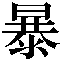 {動}あらわす(アラハス)。むき出しにして見せる。〈類義語〉→曝バク。「暴露」「暴之於民而民受之=コレヲ民ニ暴シテ民モコレヲ受ケタリ」〔→孟子〕