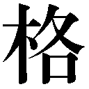 {名}こつんとつかえるかたいかどや、わく。物事を制限するきまり。法則。「格式」「及格(=合格)」「言有物、而行有格也=言ニ物有リテ、行ニ格有ルナリ」〔→礼記〕