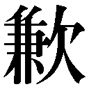 {動・形}不足する。不満であるさま。「歉収ケンシュウ(作物の収穫不足、不作)」「抱歉ホウケン(残念に思う)」