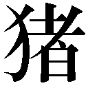 会意兼形声。「犬+音符者(充実する、太る)」。太ったいのしし。その家畜となったのがぶた。猪は、豬の俗字。