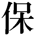 {動}たもつ。外をとり巻いて、中の物をたいせつに守る。「保護」「保民而王=民ヲ保チテ王タリ」〔→孟子〕