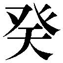 象形。刃が三方または四方に張り出ていて、どちらでも突けるほこを描いたもので、回転させる意を含む。十干が一巡してもとに戻ろうとするその最後の位。