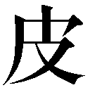 {名}かわ(カハ)。しなやかにからだにかけるかわ。動植物のからだの表面にかぶさった、毛がついたしなやかなかわ。〈類義語〉→革。「皮革」「樹皮」