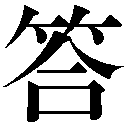 {動}こたえる(コタフ)。相手のしたことに対してこちらの態度を示す。返事をする。また、むくいる。〈同義語〉→荅。「応答」「夫子不答=夫子答ヘズ」〔→論語〕「礼人不答反其敬=人ヲ礼シテ答ヘラレザレバソノ敬ヲ反リミヨ」〔→孟子〕