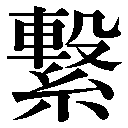 {動}つなぐ。つながる。ひもでしばってつなぐ。線を引いてつなぐ。〈同義語〉→系。「繋舟=舟ヲ繋グ」「繋恋ケイレン」