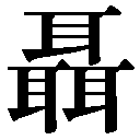 複数辞典一括検索+- (非使用)広辞苑大辞林新辞林大辞泉古語NHK 日本語発音アクセント辞典日国明鏡国語辞典新明解漢字源必携類類義使分大シ英辞郎研究社新英和大辞典ジーニアス英和大辞典ことわざ- (非使用)広辞苑大辞林新辞林大辞泉古語NHK 日本語発音アクセント辞典日国明鏡国語辞典新明解漢字源必携類類義使分大シ英辞郎研究社新英和大辞典ジーニアス英和大辞典ことわざ- (非使用)広辞苑大辞林新辞林大辞泉古語NHK 日本語発音アクセント辞典日国明鏡国語辞典新明解漢字源必携類類義使分大シ英辞郎研究社新英和大辞典ジーニアス英和大辞典ことわざ【聶】🔗⭐🔉【聶】 18画 耳部 区点=7067 16進=6663 シフトJIS=E3E1 《音読み》 ショウ(セフ)/ジョウ(デフ)/ニョウ(ネフ)〈ni〉 《意味》 {動}ことばを口中に含んで小さな声で話す。ひそひそとささやく。〈同義語〉→囁。 《解字》 会意。「耳+耳+耳」で、耳を寄せあってひそひそと話すことをあらわす。 《熟語》 →熟語 →主要人名 漢字源 ページ 3579 での【聶】単語。