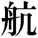 {動}ふねが並んで勇ましく進む。のち、ふねが進むことをいう。また、転じて、空中を海になぞらえ、空中を進むことを航空ともいう。「航海」