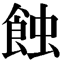 複数辞典一括検索+- (非使用)広辞苑大辞林新辞林大辞泉古語NHK 日本語発音アクセント辞典日国明鏡国語辞典新明解漢字源必携類類義使分大シ英辞郎研究社新英和大辞典ジーニアス英和大辞典ことわざ- (非使用)広辞苑大辞林新辞林大辞泉古語NHK 日本語発音アクセント辞典日国明鏡国語辞典新明解漢字源必携類類義使分大シ英辞郎研究社新英和大辞典ジーニアス英和大辞典ことわざ- (非使用)広辞苑大辞林新辞林大辞泉古語NHK 日本語発音アクセント辞典日国明鏡国語辞典新明解漢字源必携類類義使分大シ英辞郎研究社新英和大辞典ジーニアス英和大辞典ことわざ【蝕】🔗⭐🔉【蝕】 14画 虫部 区点=3110 16進=3F2A シフトJIS=9049 《音読み》 ショク/ジキ〈sh〉 《訓読み》 むしばむ 《意味》 {動}むしばむ。虫が人の皮膚にくいこむ。また、おかしてくいものにする。 {名}太陽や月が欠けること。〈同義語〉→食。「日蝕(=日食)」「月蝕(=月食)」 {名}くいこみ。くいこんでくさったきず。 《解字》 会意兼形声。「虫+音符食(くいこむ)」。 《熟語》 →熟語 →下付・中付語 〈注〉熟語は→【食】を見よ。 漢字源 ページ 3925 での【蝕】単語。