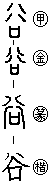 会意。「八印(わかれ出る)二つ+口(あな)」で、水源の穴から水がわかれ出ることを示す。▽卻(=却)の音符谷キャクは、口の上、鼻の下の正中線のくぼみをあらわし、谷コクとは別字。