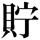 会意兼形声。右側の字(音チョ)が、その原字で、四角いわくの形を描いた象形文字。貯はそれを音符とし、貝(財貨)を加えて、わくの中に財貨をいっぱいにつめこむことを示す。