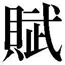 会意兼形声。武は「止(あし)+戈(ほこ、武器)」の会意文字で、敵を探し求めて、むりに進むの意味を含む。賦は「貝+音符武」で、乏しい財貨を、むりに探り求めること。▽詩をつくるという意味の場合は、布・敷(しきのべる、展開する)に当てて、自分の心情を敷きのべること。