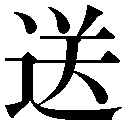 {動}おくる出かける人やすぎゆくものを、ていねいにおくり出す。〈対語〉→迎。「歓送会」「送賓」「送往迎来=往クヲ送リ来ルヲ迎フ」〔→中庸〕