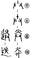 (足の動作)+物を両手でささえるさま」で、物をそろえて他所へはこぶことを示す。そろえまとめて、すうっと押し出すの意を含む。